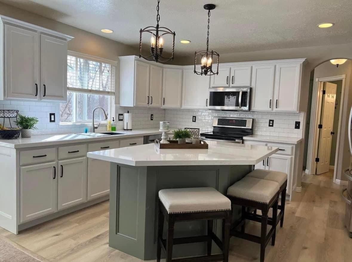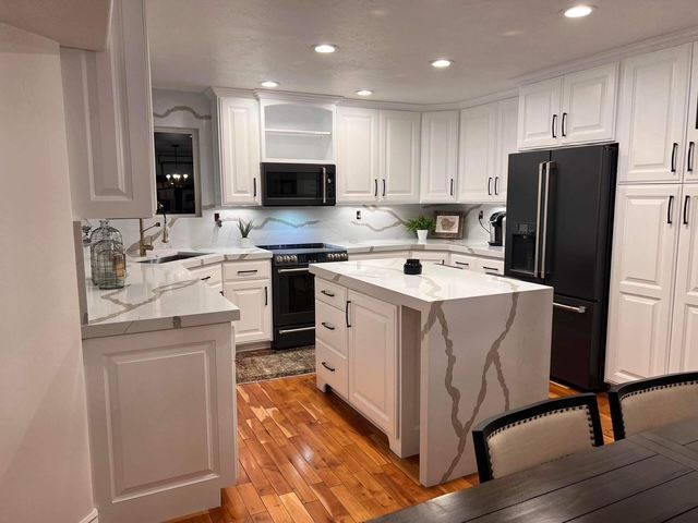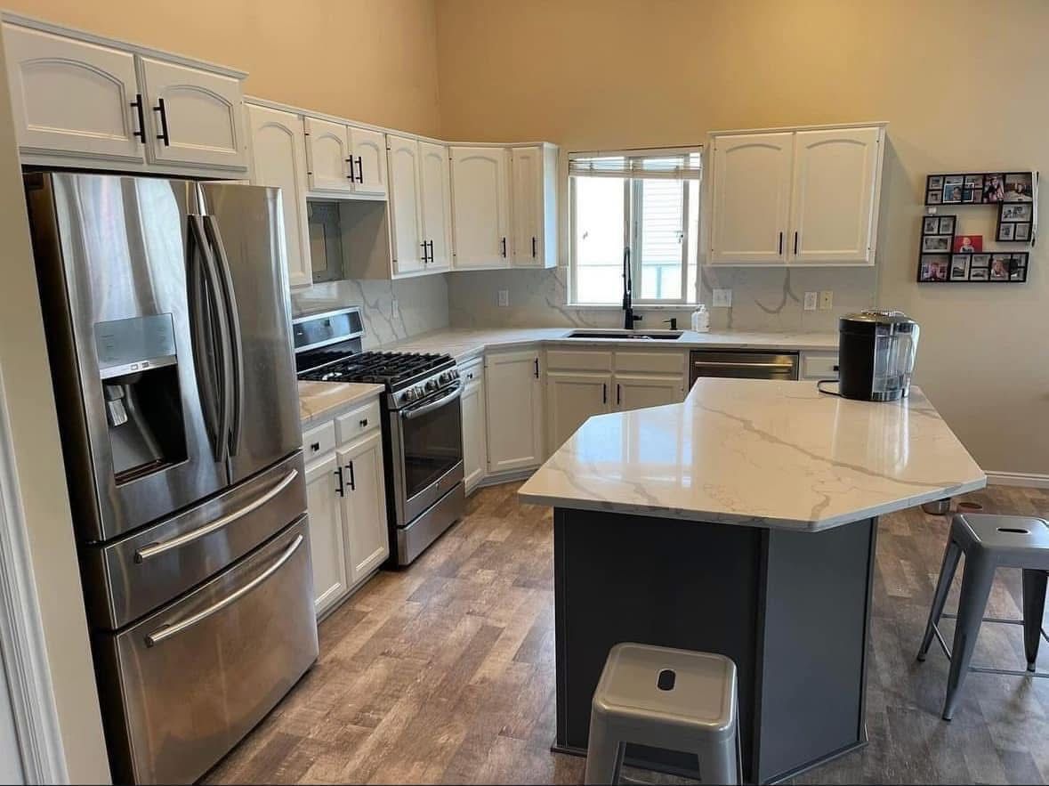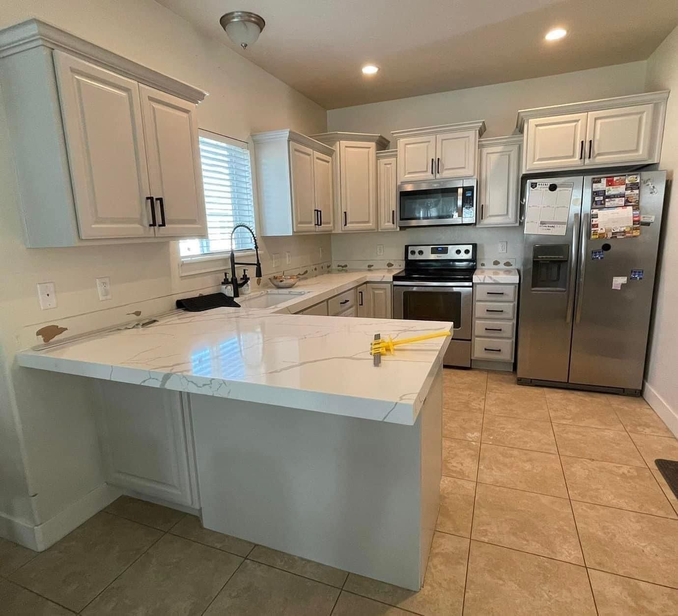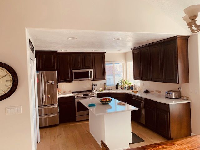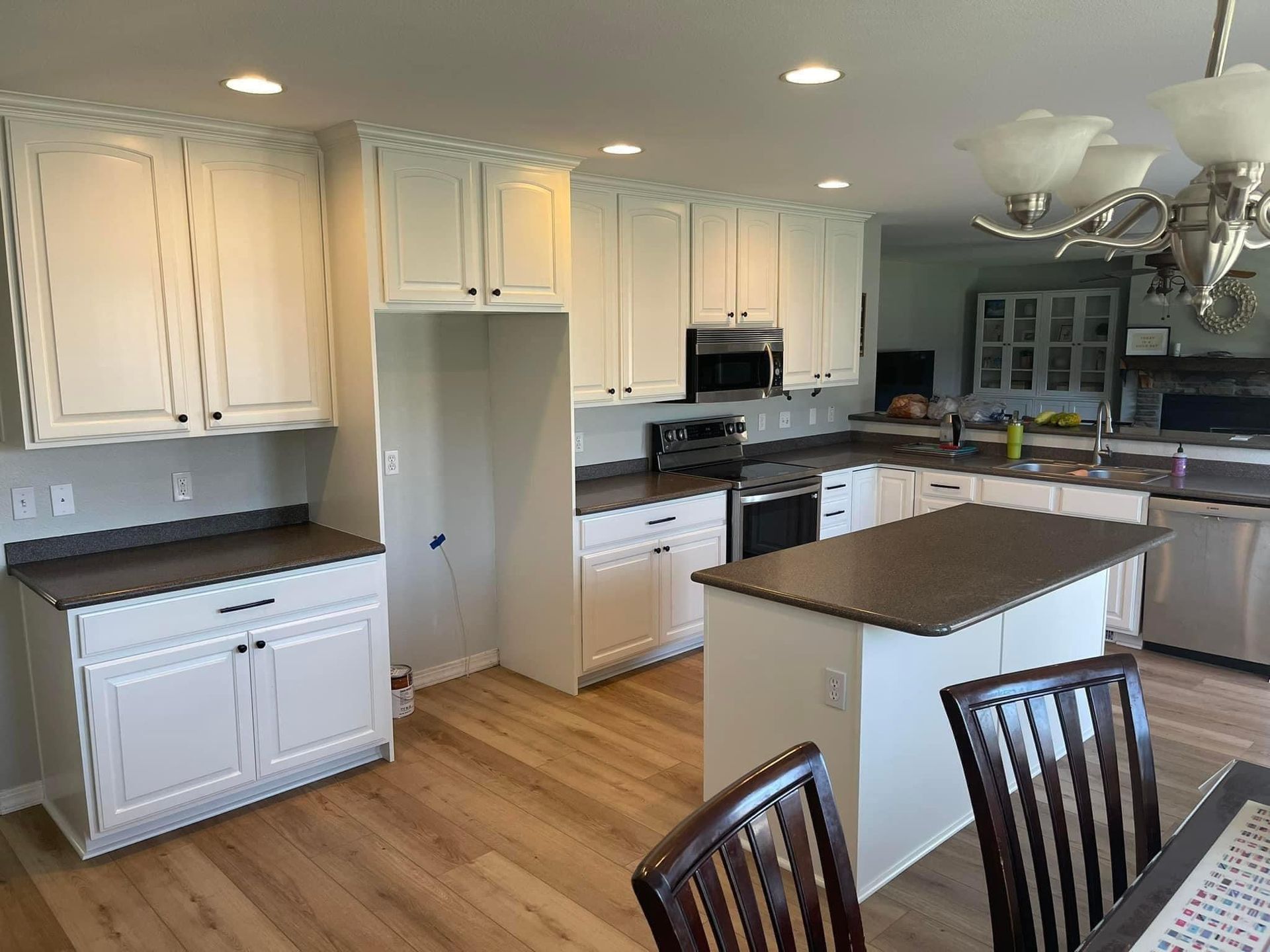 Explore our collection of beautifully refinished cabinets, mantles, banisters, entertainment centers, and epoxy flooring projects. Each project showcases the craftsmanship and attention to detail that Drabs2Fabs brings to every home transformation. Browse through our work to get inspired for your next home improvement project. Whether you’re updating your kitchen, refreshing your living room, or upgrading your floors, Drabs2Fabs is here to help bring your vision to life. Call us at 801-872-4289 to get started!